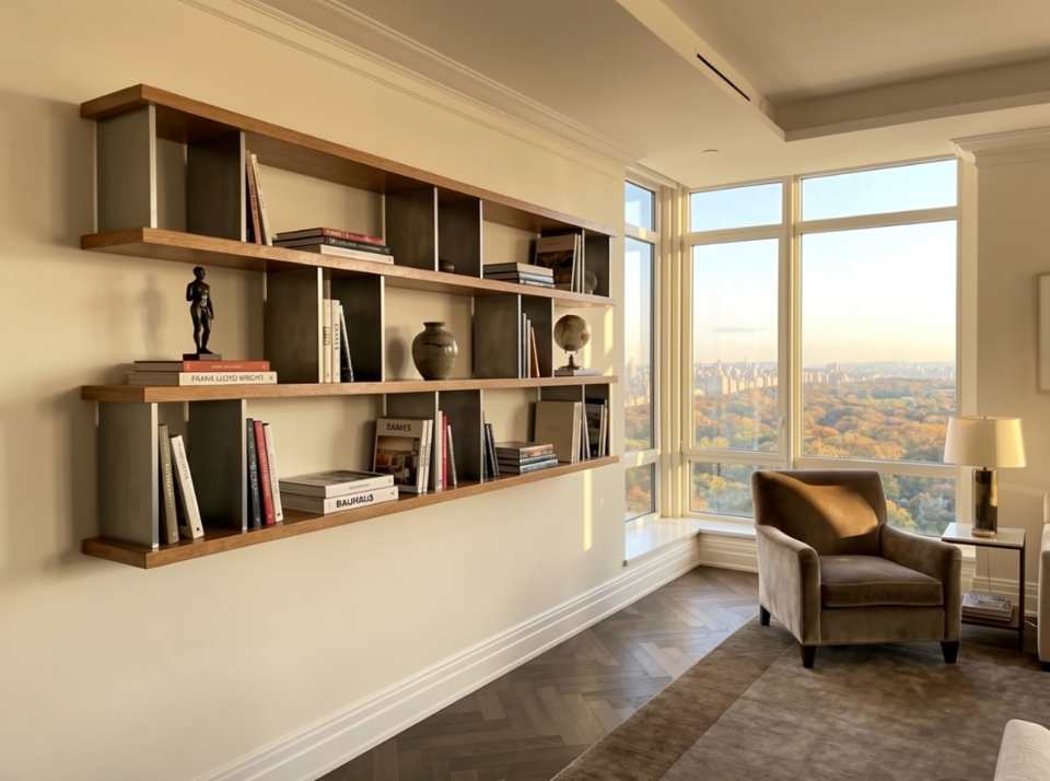 Custom shelving unit for a private residence in Manhattan.