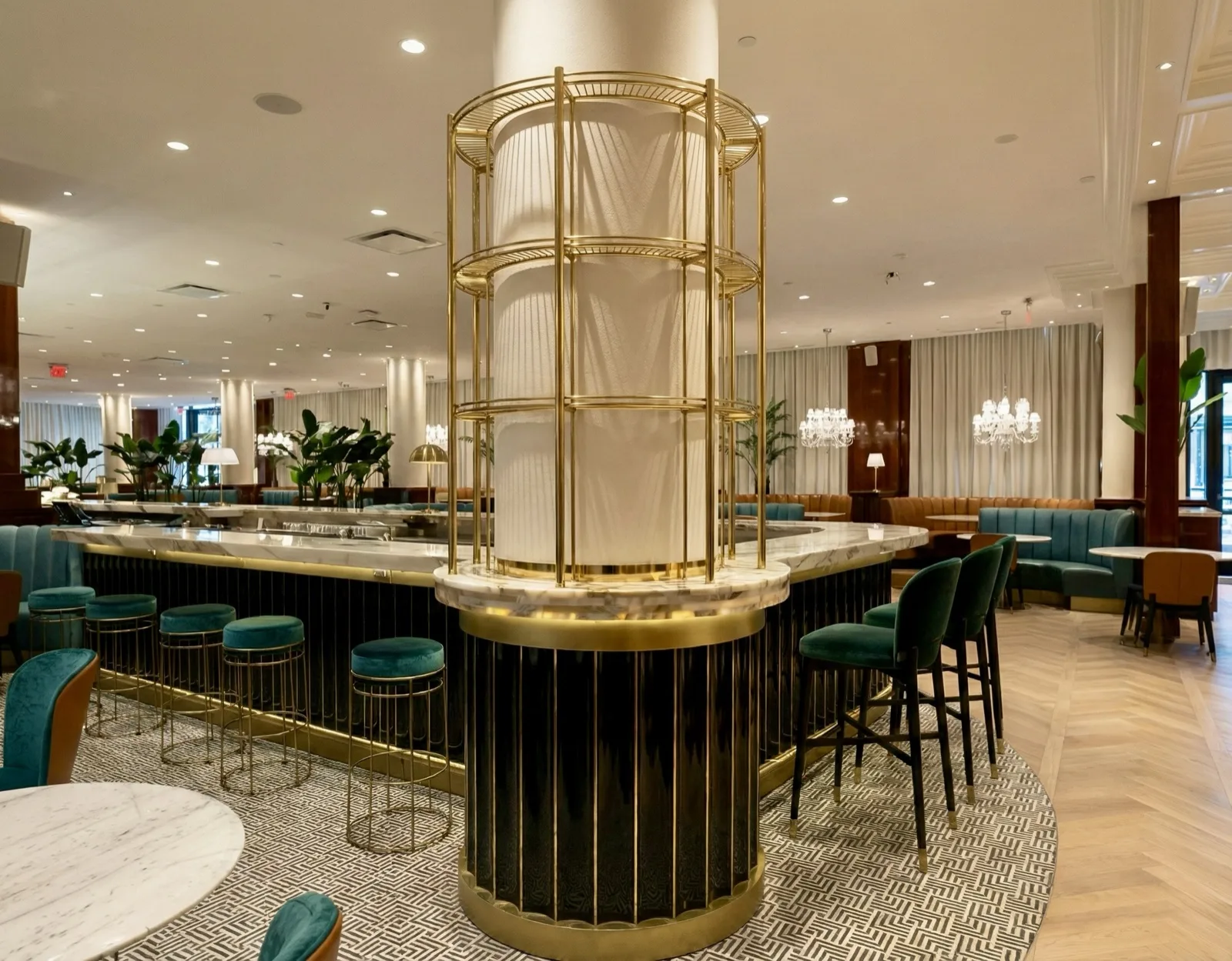 Integrated within a fully brass-clad, backlit bar installation. A refined composition enhancing light, depth, and atmosphere.