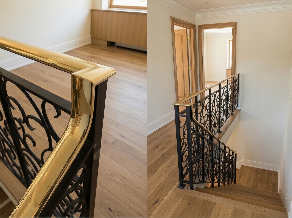 This project combines traditional blacksmith techniques with refined architectural detailing, creating a decorative yet elegant stair railing.